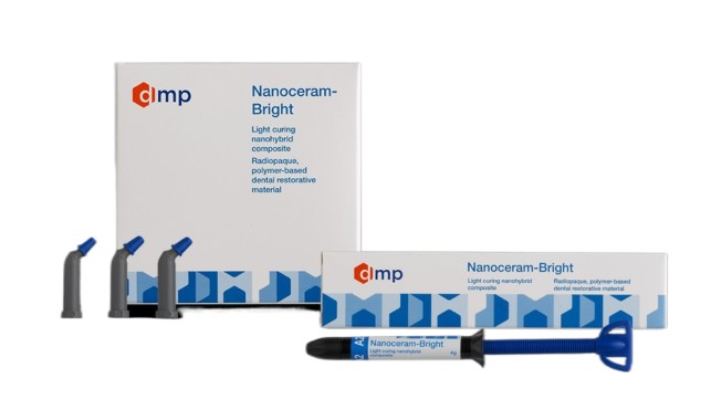 Η Nanoceram-Bright της DMP συνδυάζει υψηλές μηχανικές ιδιότητες με εξαιρετική αισθητική και ανθεκτικότητα, καθιστώντας το ιδανικό για άμεσες αποκαταστάσεις σε πρόσθια και οπίσθια δόντια. Η νανο-υβριδική του σύνθεση με 15 διαθέσιμες αποχρώσεις (shade system) με εξαιρετική ικανότητα στιλβώσεως (polishability).εξασφαλίζει άριστη προσαρμογή και μακροχρόνια σταθερότητα.
